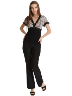 Vive Maria French Flower Damen T-Shirt Schwarz/creme Allover
