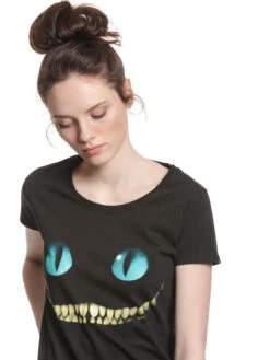 Die Vorderseite wird mit einem großen Druck der Grinsekatze geziert. Wer seine Liebe für den Disney Klassiker Alice im Wunderland und seine Hauptcharaktere, die mutige Alice, die Grinsekatze und den Hutmacher öffentlich zeigen möchte, für den ist dieses schöne Shirt genau die richtige Wahl.