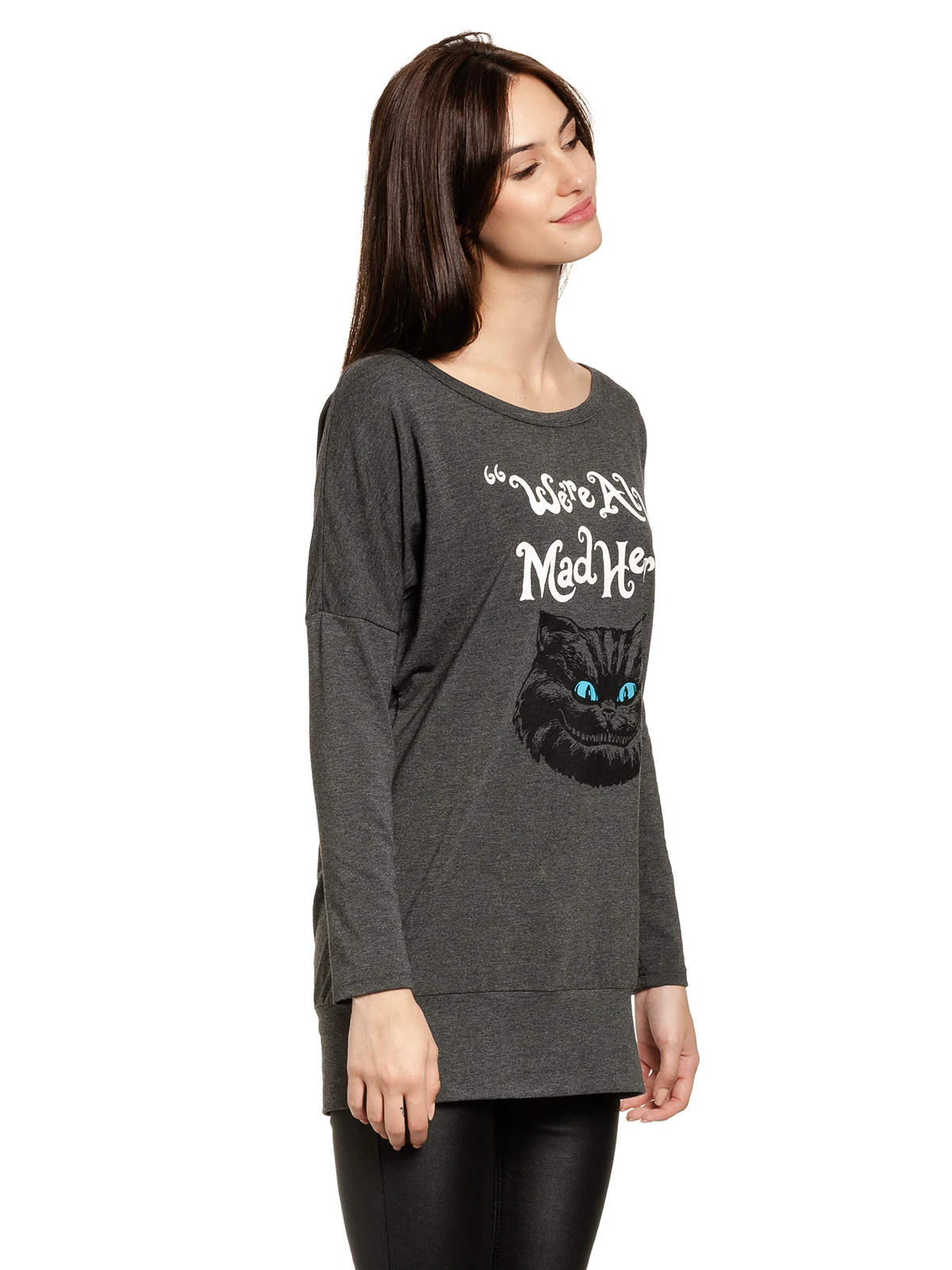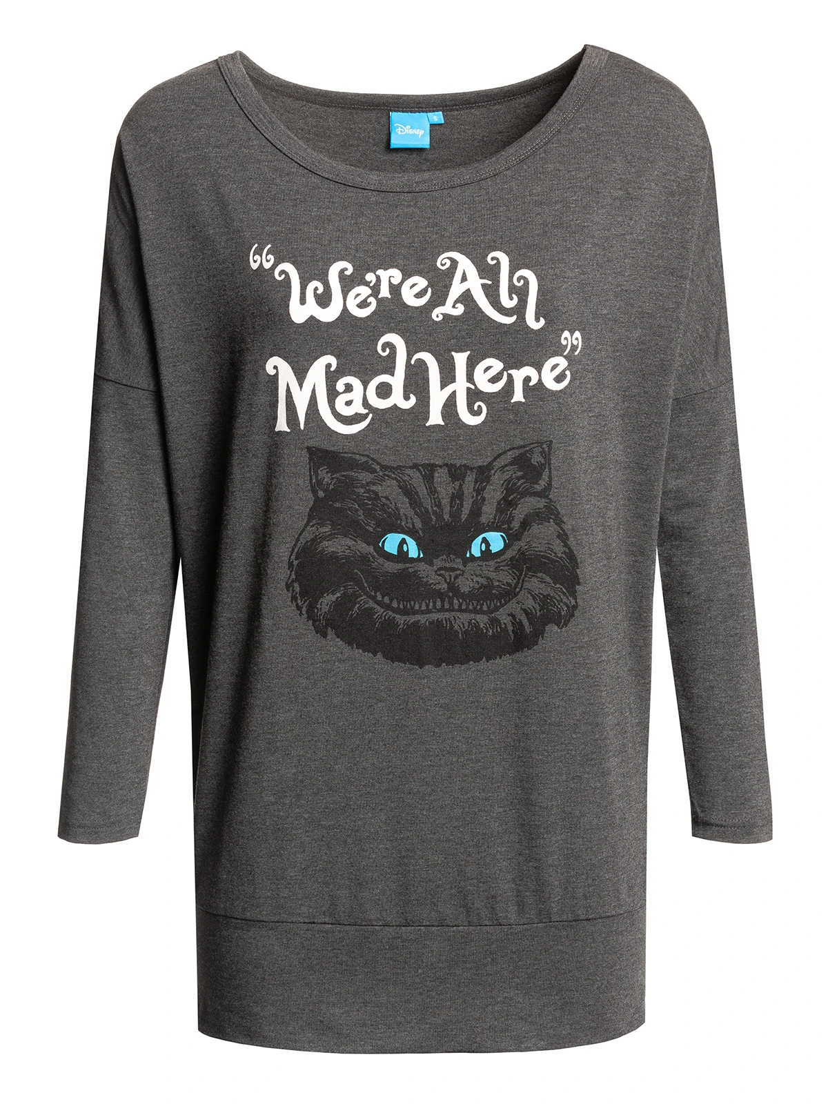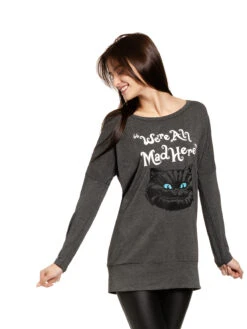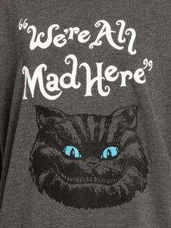 Das sĂĽĂźe Longsleeve ist aus einem angenehmen Materialgemisch aus Polyester, Viskose und Elasthan. Es hat lange Arme, einen runden Halsausschnitt sowie eine lockere Passform. Der Aufdruck zeigt den Kopf der Grinsekatze sowie den Schriftzug ‚We’re all mad here‘ was so viel bedeutet wie ‚wir sind hier alle verrĂĽckt‘. Der untere Daum wird mit einem breiten BĂĽndchen abgeschlossen. Der Alice im Wunderland Longsleeve hat eine tolle Passform und unterstreicht den perfekten Freizeitlook. Du kannst ihn am besten mit Jeans, Sneakern und einem Longcardigan kombinieren.