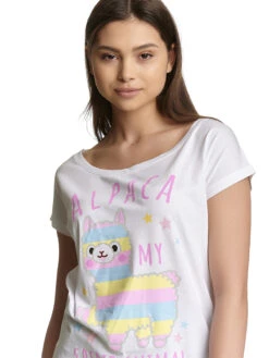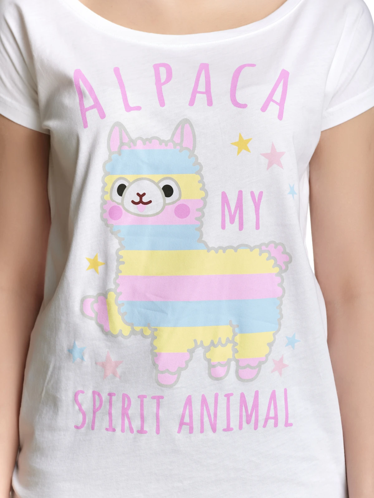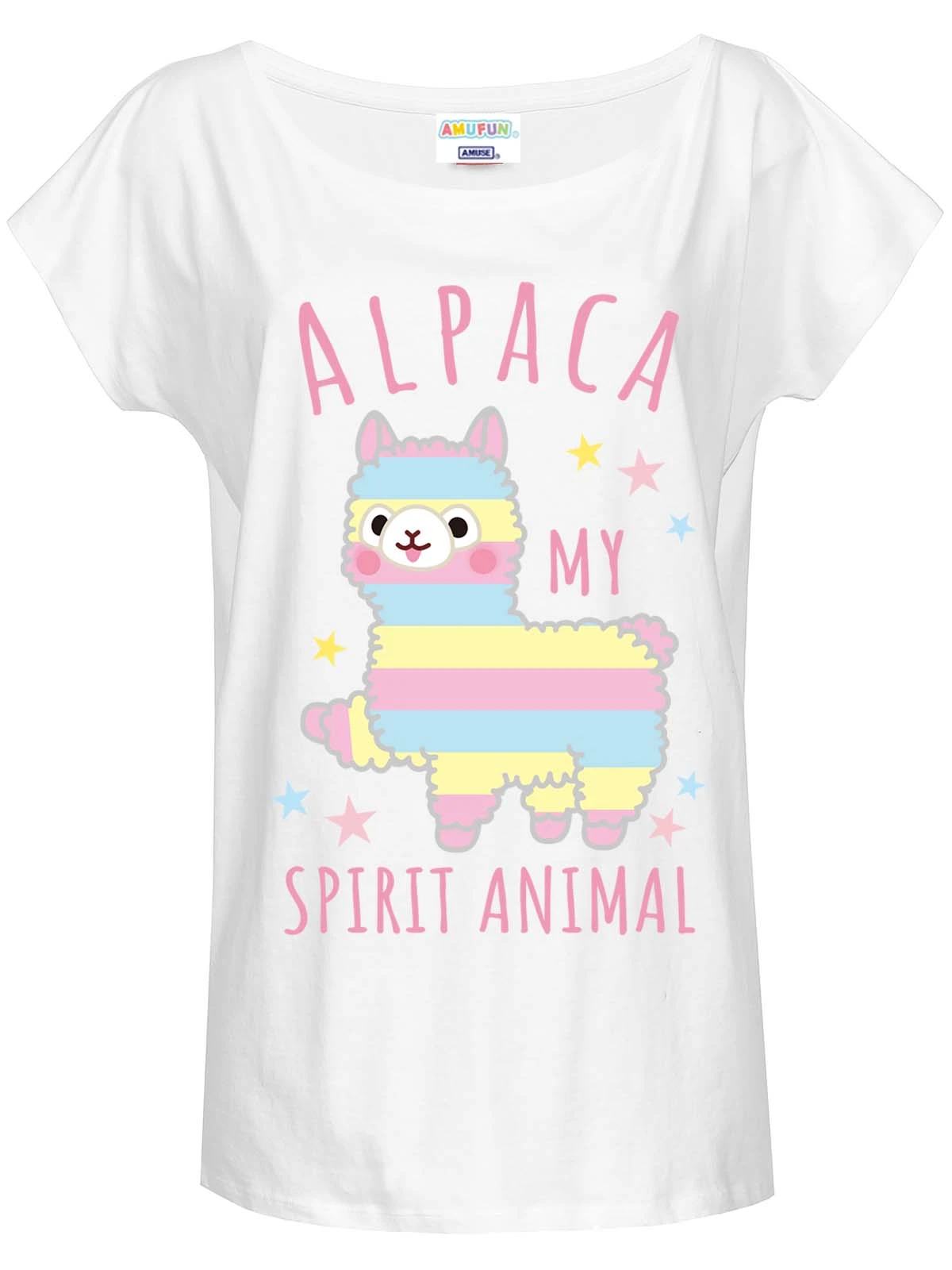 Zuckerschock garantiert! Der absolut zauberhaft Druck zeigt das Alpacasso ‚Shiro-chan‘ in bon-bon-farben. Gelb-, rosa- und hellblau-gestreift läuft es spazieren. Der rosafarbene Schriftzug ‚Alpaca My Spirit Animal‘ was ĂĽbersetzt so viel wie ‚mein Seelentier‘ bedeutet, sowie einige bunte Sternchen komplettieren den Druck. Ein sĂĽĂźes Shirt fĂĽr alle Feen und Elfen, die in ihrer Welt noch Platz fĂĽr Einhörner und Zauberwesen haben.