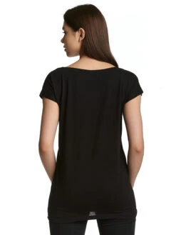 Dieses Damen T-Shirt besteht aus einem angenehmen Baumwollmaterial. Es ist locker geschnitten, hat einen weiten runden Halsausschnitt und kurze Ärmel.