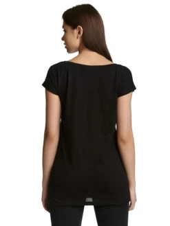 Dieses Damen T-Shirt besteht aus einem angenehmen Baumwollmaterial. Es ist locker geschnitten, hat einen weiten runden Halsausschnitt und kurze Ärmel.