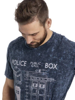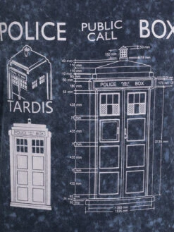 Der Aufdruck zeigt TARDIS, die Telefonzellenähnliche Raum-Zeit-Maschine, welche zugleich auch als Raumschiff dient. Darüber der Schriftzg POLICE PUBLIC CALL BOX. Ein Kult-Shirt für eine Kult-Serie.