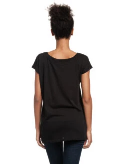 Dieses Damen T-Shirt besteht aus einem angenehmen Baumwollmaterial. Es ist locker geschnitten, hat einen weiten runden Halsausschnitt und kurze Ärmel.