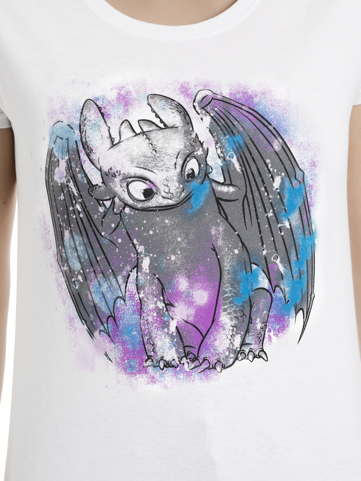 Der Aufdruck zeigt den Drachen Ohnezahn, der grau angemalt ist. Außerdem befinden sich noch blaue und lilfarbene Farbkleckse auf dem Shirt, so dass es einer Wasserfarbenmalerei ähnelt und dabei so schön Mädchenhaft, aber dennoch nicht kindisch wirkt. Ein traumhaftes Shirt für alle, die noch an zauberhafte Geschichten glauben.