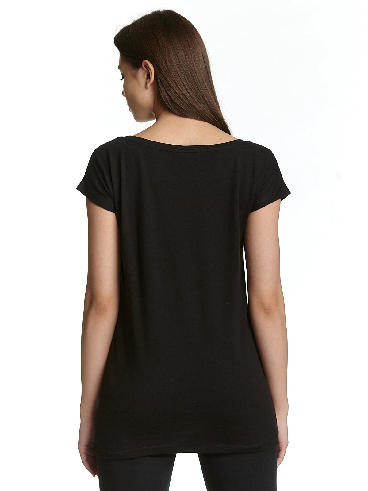 Dieses Damen T-Shirt besteht aus einem angenehmen Baumwollmaterial. Es ist locker geschnitten, hat einen weiten runden Halsausschnitt und kurze Ärmel.