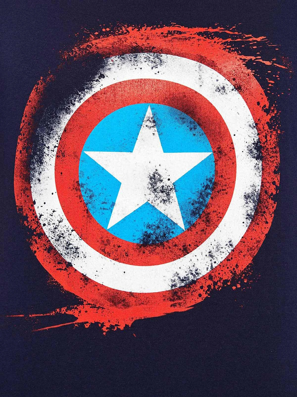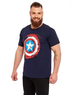 Das schlichte aber coole Captain America Herren T-Shirt ist aus einem tollen Baumwollmaterial. Es ist gerade geschnitten, hat kurze Ärmel und einen runden Halsausschnitt. Der große Frontdruck zeigt Captain Americas Schild, ein bisschen verwischt und vom Kampf beschädigt. Spielst du auch im Team Captain? Dann kannst du das mit diesem tollen Shirt zeigen.