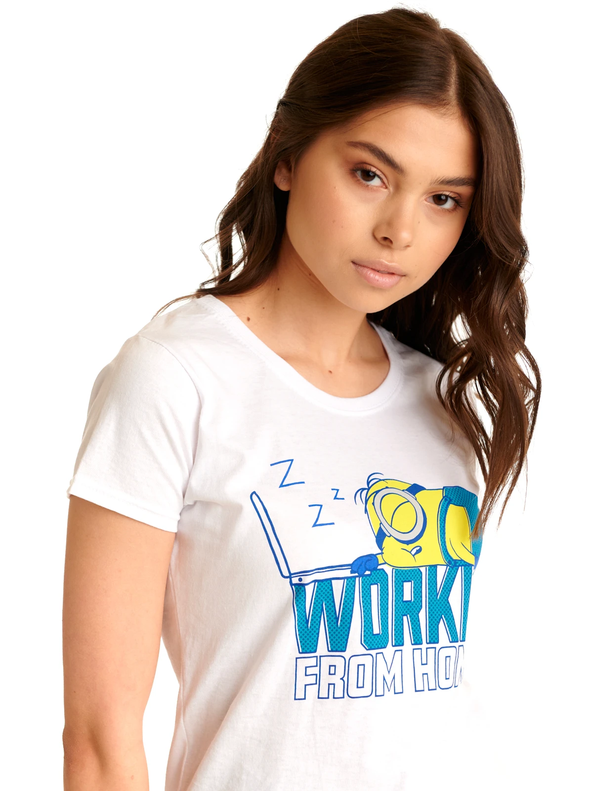 Der Frontprint zeigt den sonst so übermütigen, heute müden Minion Dave. So arbeitet er im Homeoffice – schlafend am Laptop. Der Schriftzug WORKING FROM HOME was so viel bedeutet wie von zu Hause aus arbeiten – unterstreicht sein ‚Handeln‘. Dieses Shirt ist die perfekte Wahl für alle die manchmal einfach nicht erwachsen sein möchten! Wenn auch du manchmal einfach drauf los gehst und dich von Stimmungen zur Spontanität leiten lässt, dann können wir dir dieses Shirt nur wärmstens empfehlen.