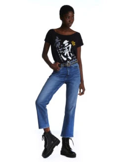 Mulan steht für Stärke, Willenskraft und Wahrhaftigkeit. Dieser wunderschöne Aufdruck ebenso. Denn er zeigt neben den chinesischen Zeichen den Schriftzug ‚Strong Chi‘ und ‚Bold Spirit‘ was für ‚Starkes Chi‘ und ‚Willenstärke‘ steht. Der Druck ist in den unaufgeregten Farben weiß, grau und gold gehalten. Ein absolutes Power Shirt für alle Power Frauen.