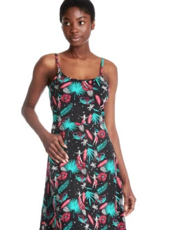 Aloha Pussy Deluxe Das coole Pussy Deluxe Sommerkleid ist aus einem angenehmen Baumwollmaterial mit Elasthananteil. Es ist in A-Linie geschnitten und hat dĂŒnne, verstellbare TrĂ€ger. Das Kleid hat einen groĂen runden Halsausschnitt, eine Teilungsnaht trennt das figurbetonte Oberteil vom ausgestellten Rockteil. Der Druck zeigt lĂ€ssige Surfermotive wie ein HulamĂ€dchen, ein Surfbrett, oder auch PalmenblĂ€tter in pink, tĂŒrkis und weiĂ. Der Grundstoff ist schwarz Das ‚Aloha Summerdress‘ ist ein legeres Alltagskleid, das hervorragend zu Boots und schwarzem Schmuck passt. Der Druck macht Lust auf Sommer. Wer sich im TrĂ€gerkleid nicht ganz so wohl fĂŒhlt sollte sich mal unsere anderen Modelle aus der ‚Aloha‘ Reihe ansehen. LĂ€nge in GröĂe S ohne TrĂ€ger ca. 78 cm.