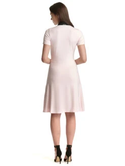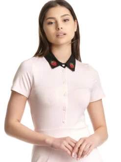 Zum anbeißen süß mit dem neuen ‚Berry‘ Kleid von Pussy Deluxe. Das schöne Pussy Deluxe Kleid ist aus einem angenehmen Viskosematerial mit Elasthananteil. Der Futterstoff ist aus Polyester. Das Kleid ist in sanfter A-Linie geschnitten, hat kurze Arme und einen Blusenkragen, der sich schwarz vom ansonsten rosafarbenen Kleid absetzt. Eine Knopfleiste reicht vom Kragen bis zu Teilungsnaht, die das figurbetonte Oberteil vom leicht ausgestellten Rockteil trennt. Dieser ist mit Polyester gefüttert und fällt angenehm um die Beine. Kleine gestickte Erdbeeren zieren jeweils eine Kragenseite und lockern das Kleid optisch auf. Das ‚Cat Sweet Berry‘ Kleid ist absolut zauberhaft und passt sowohl zu Sneakern als auch zu Sandalen. Du kannst das Kleid beim nächsten Sommerfest oder auch zur Gartenparty ausführen. Eine farbliche Alternative bietet das ‚Cat Classic Berry‘ Kleid, ebenfalls von Pussy Deluxe.