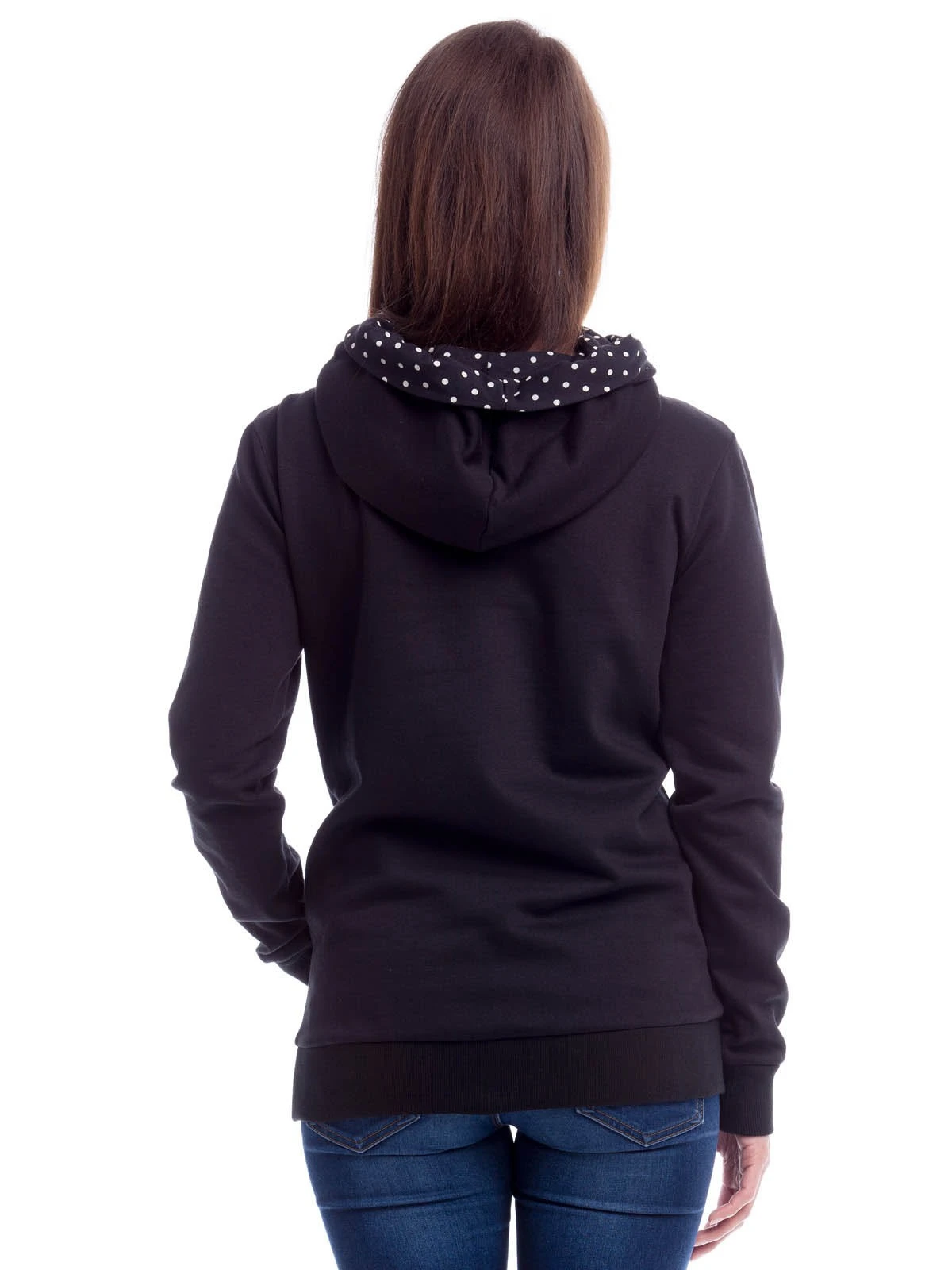 Der wunderschöne Pussy Deluxe Hoddie ist aus einem angenehm weichen Baumwoll-Polyestergemisch. Mit der Wickeloptik am Ausschnitt mit süßem Pünktchendesign in schwarz weiss ist dieser Hoodie ein wahrer Blickfang. Der Pulli ist leger geschnitten und hat lange Ärmel, die in dehnbaren Bündchen enden und gemütliche Eingrifftaschen vorne. Ein wunderschöner Klassiker, der im Kleiderschrank natürlich nicht fehlen darf.