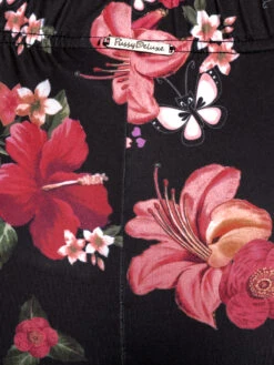 Neue Styles online – der Frühling wird bequem! Die süße Pussy Deluxe Leggings ist aus einem angenehmen Polyestermaterial mit Elasthananteil. Sie hat einen breiten Gummibund für einen hohen Tragekomfort. Die langen Hosenbeine sind figurbetont und enganliegend und werden mit einer Bordüre aus transparenter Spitze abgeschlossen. Der sommerliche Druck zeigt pinkfarbene Hawaiiblüten auf schwarzem Stoff. Die ‚Cherries‘ Leggings ist eine mega süße frühlingshafte Leggings, die garantiert für gute Laune sorgt, in dem sie dein Outfit aufpeppt. Du kannst sie mit Sneakern und einen Longshirt kombinieren, natürlich sieht auch ein Kleid dazu spitze aus. Innenbeinlänge in Gr. S ca. 74 cm.