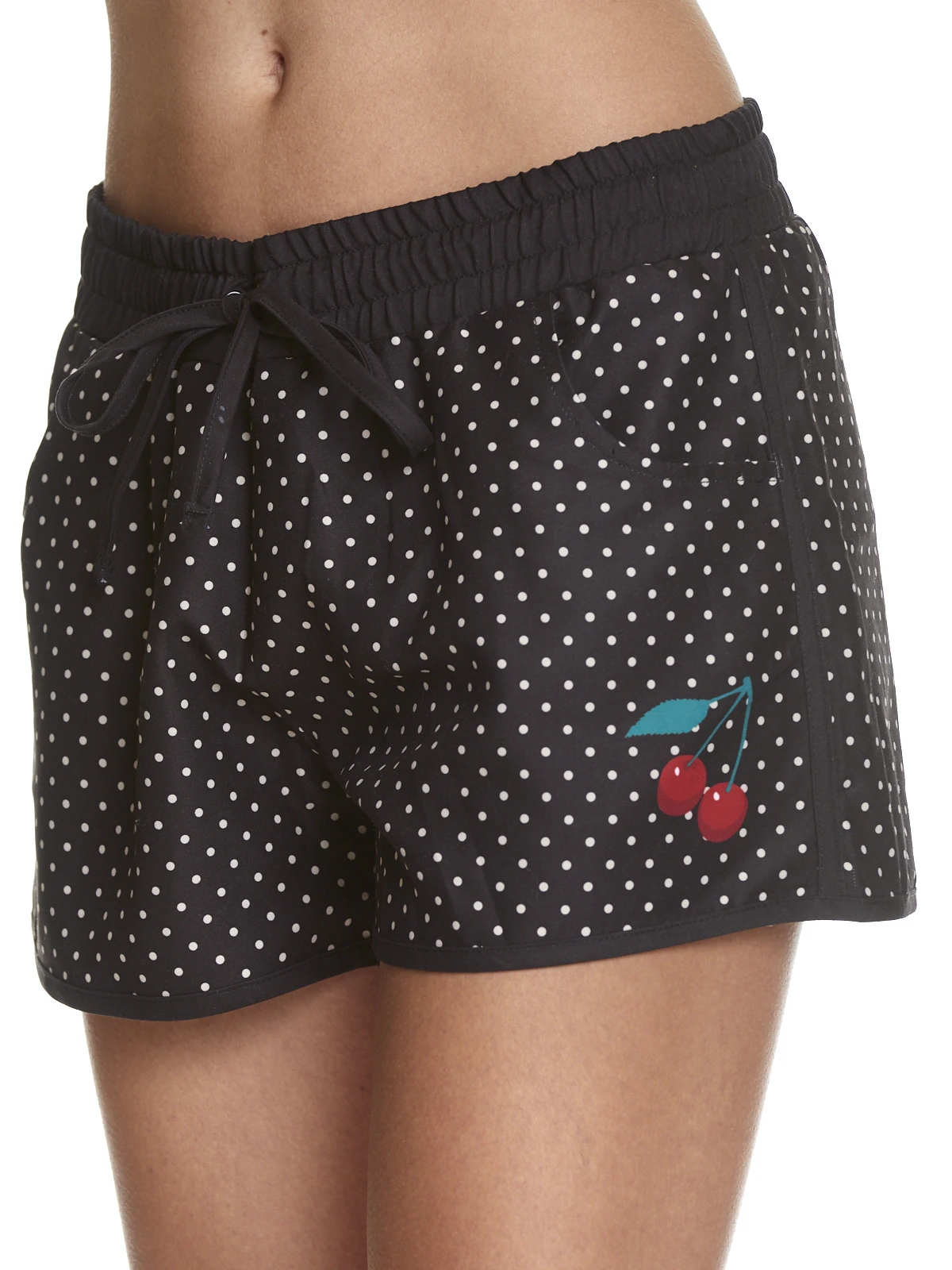 Für den perfekten Tag am Pool Die süßen Pussy Deluxe Badeshorts sind aus einem tollen Polyestermaterial. Das Innenfutter ist ebenfalls Polyester. Die Shorts sind locker geschnitten und haben einen breiten schwarzen Gummibund mit einem Bindeband zur zusätzlichen Weitenregulierung. Seitliche Eingrifftaschen machen sie besonders bequem. Die Hosenbeine werden mit einem schwarzen Saum abgeschlossen. Ein kleines Kirschenpaar komplettiert den angesagten Polka-Dots-Druck. Der perfekte Wegbegleiter für den Garten oder die Poolbar. Ob mit T-Shirt oder über dem Badeanzug. Die süßen Minimal Dots Badeshorts gehören wie die Sonne zum Sommer. Das leichte Material ist angenehm zu tragen und das beste ist, die tolle Hose gibt es gleich in drei verschiedenen Ausführungen.