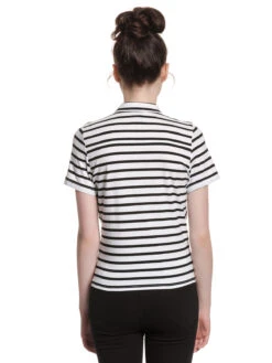 PUSSY DELUXE DAMEN KURZARMBLUSEMarke: Pussy DeluxeModell: Revival Stripes Short Girl BlouseProdukt Nr.: 37947Farbe: schwarz/weißHauptmaterial: 90% Baumwolle, 10% Elasthan
