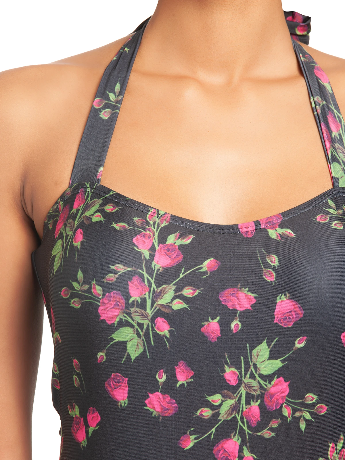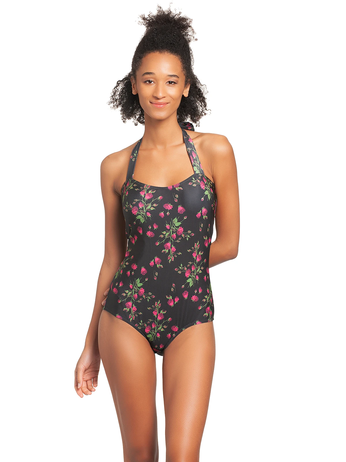 Aufgepasst ihr Badenixen und Leichtmatrosen – jetzt wird bunt mit der neuen Pussy Deluxe Bademode. Der süße Pussy Deluxe Badeanzug ist aus einem leichten Polyestermaterial mit Elasthananteil. Der Futterstoff auf der kompletten vorderen Seite ist aus Polyestern. Der Badeanzug schmiegt sich angenehm an den Körper und zaubert eine schöne Silhouette. An den leicht herzförmigen Ausschnitt sind Träger angebracht, die im Nacken zusammengebunden werden. Seitliche Stäbchen sowie vorgeformte, leicht gefütterte Cups geben Halt und sorgen für einen guten Sitz. Der Druck zeigt pinke Rosen und Rosenzweige auf schwarzem Stoff. Der ‚Vintage Rose‘ Badeanzug sieht nicht nur gut aus, sondern sitzt auch perfekt, egal ob beim Sonnenbaden oder beim Schwimmtraining. Und ganz nebenbei kannst du noch etwas für die Umwelt tun, denn die Pussy Deluxe Bademodenreihe besteht aus recyceltem Plastik.