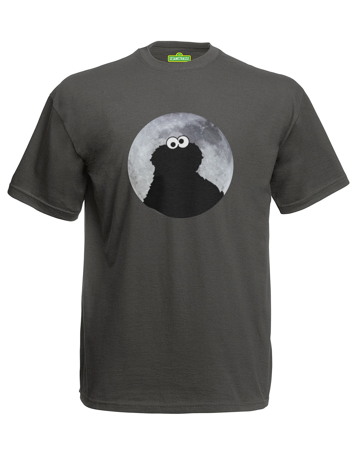 Der coole Druck zeigt das Krümelmonster, das vor einem Vollmond steht. Der Mond hebt sich in grautönen vom Shirt ab, das Krümelmonster selbst ist in der Farbe des Shirts gehalten. Ein tolles Design für alle Fans der Sesamstraße.