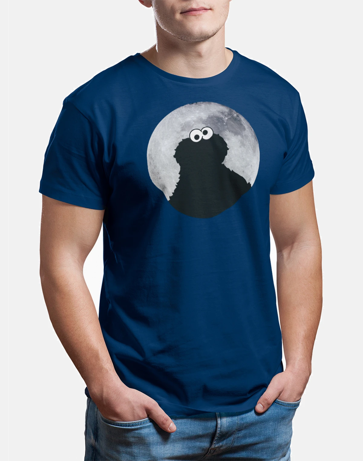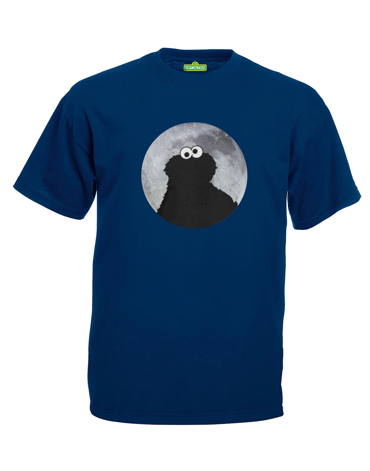 Der coole Druck zeigt das Krümelmonster, das vor einem Vollmond steht. Der Mond hebt sich in grautönen vom Shirt ab, das Krümelmonster selbst ist in der Farbe des Shirts gehalten. Ein tolles Design für alle Fans der Sesamstraße.
