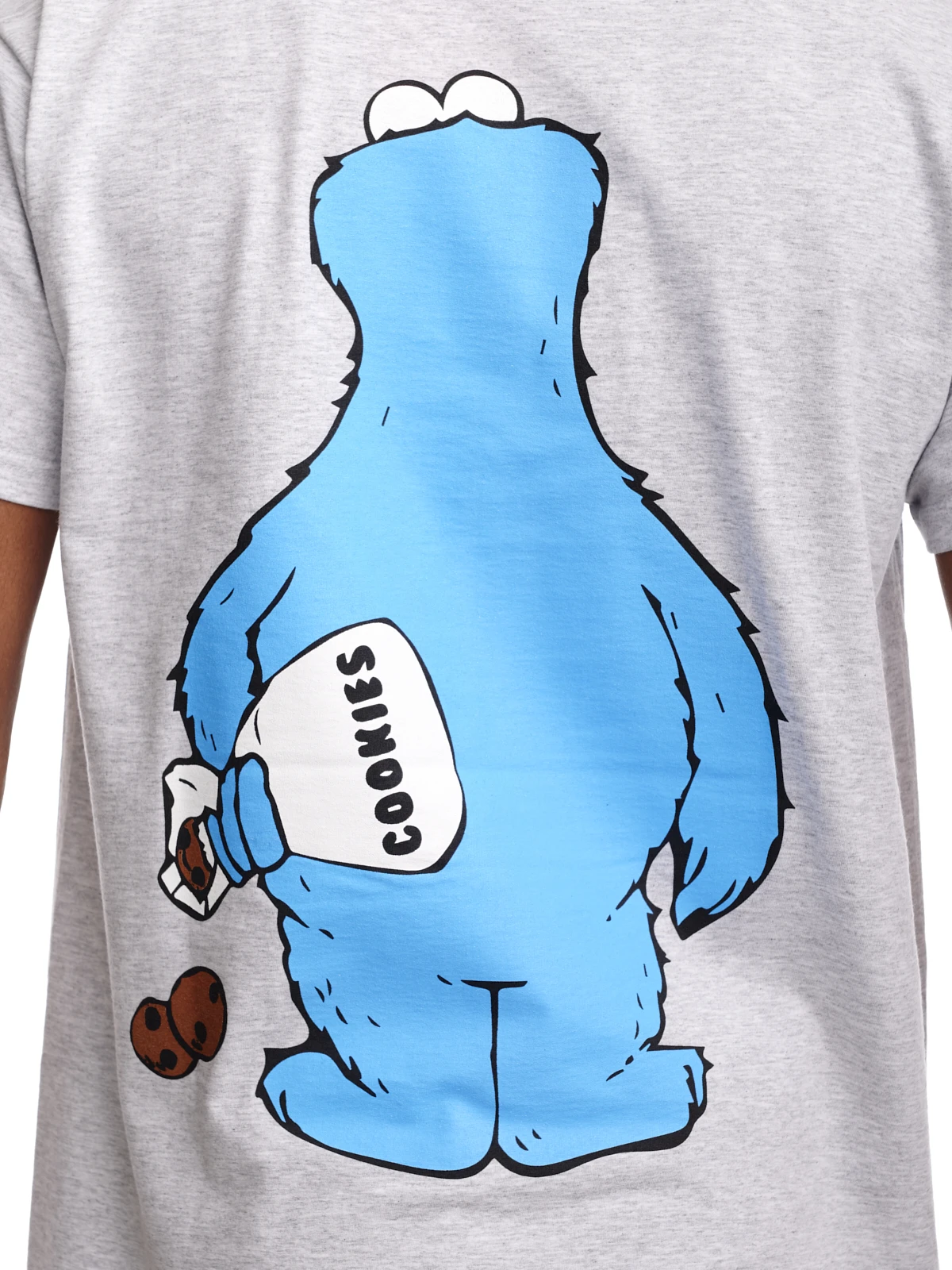 Der plakative Aufdruck vorne zeigt das KrĂĽmelmonster, ebenfalls von vorne, dass eine TĂĽte mit Keksen versucht hinter sich zu verstecken. Auf dem RĂĽcken sehen wir die RĂĽckseite vom KrĂĽmelmonster. Ein supercooles Shirt fĂĽr alle Fans des blauen Riesen, die seine Vorliebe fĂĽr Cookies teilen.