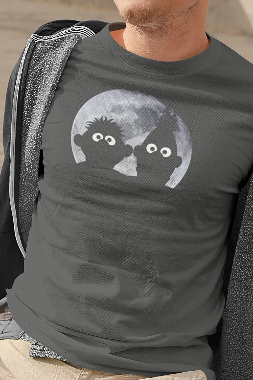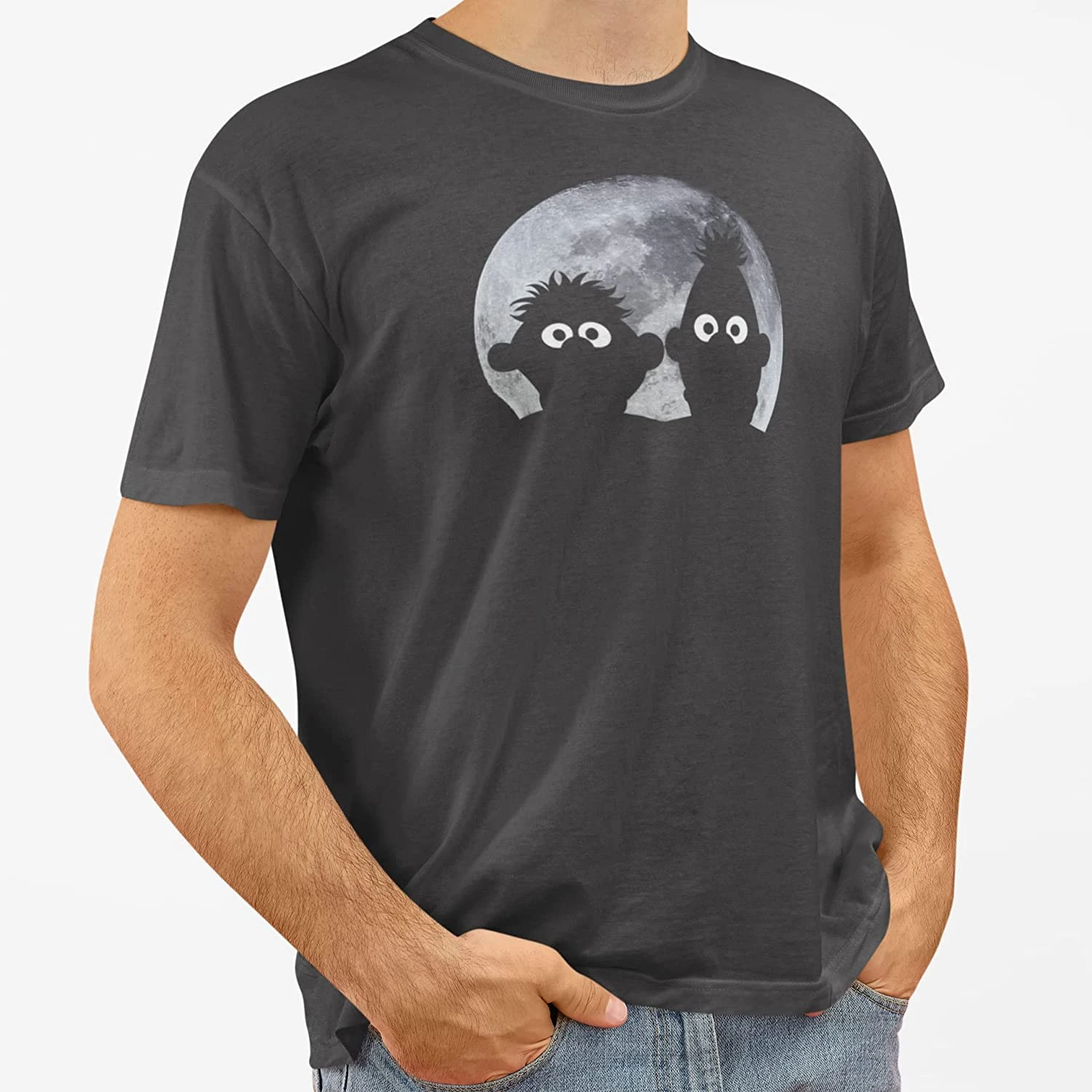 Der coole Druck zeigt Ernie und Bert, die vor einem Vollmond stehen. Der Mond ist in grautönen gehalten und hebt sich somit ab, während Ernie und Bert in den Farben des Shirts gehalten sind. Ein tolles Design für alle Fans der Kultssendung ‚Sesamstraße‘.