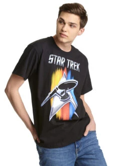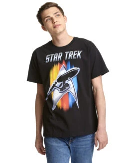 Der mega coole Druck zeigt das Sternflottenabzeichen sowie das Raumschiff Enterprise. Im Hintergrund sieht man drei Farbstreifen, die das Logo förmlich zum leuchten bringen. Der Schriftzug ‚Star Trek‘ komplettiert das Gesamtbild. Dieses Shirt ist ein Must-have fĂĽr alle Fans, egal welche Star Trek Serie ihr favorisiert, mit diesem Shirt liegt ihr garantiert richtig.