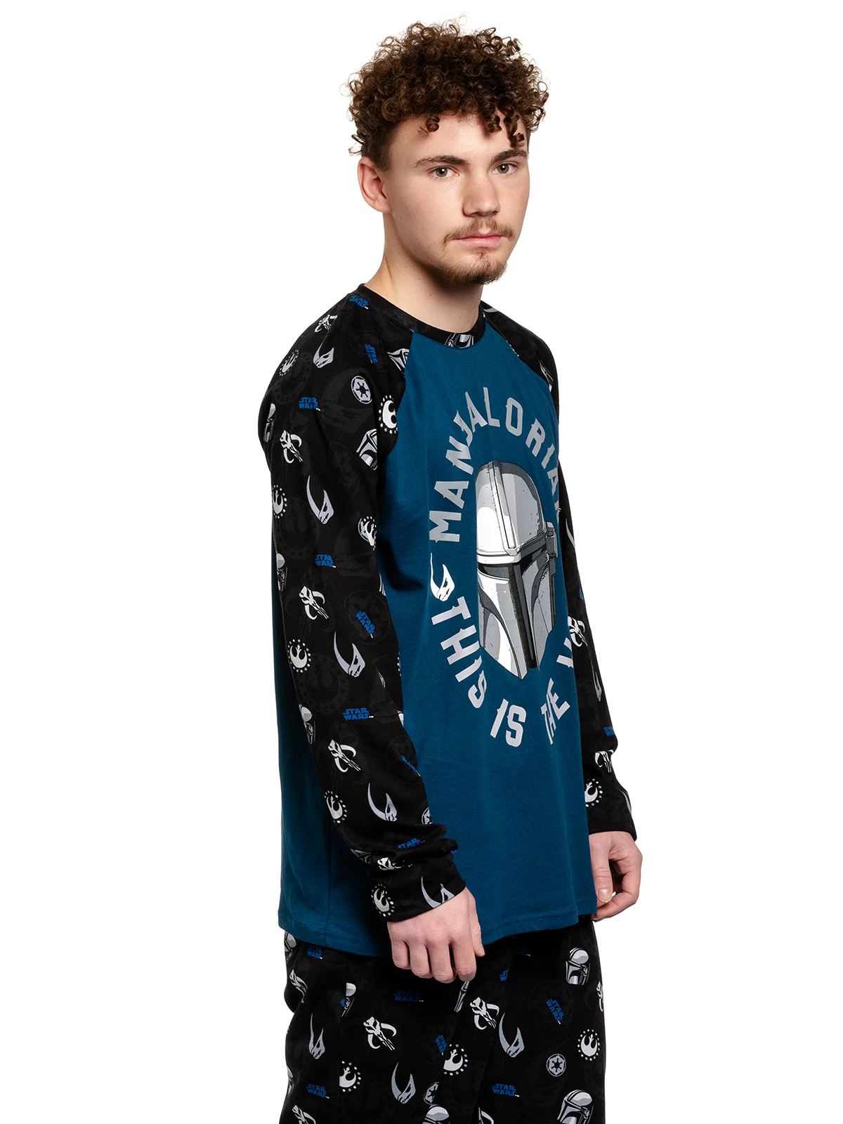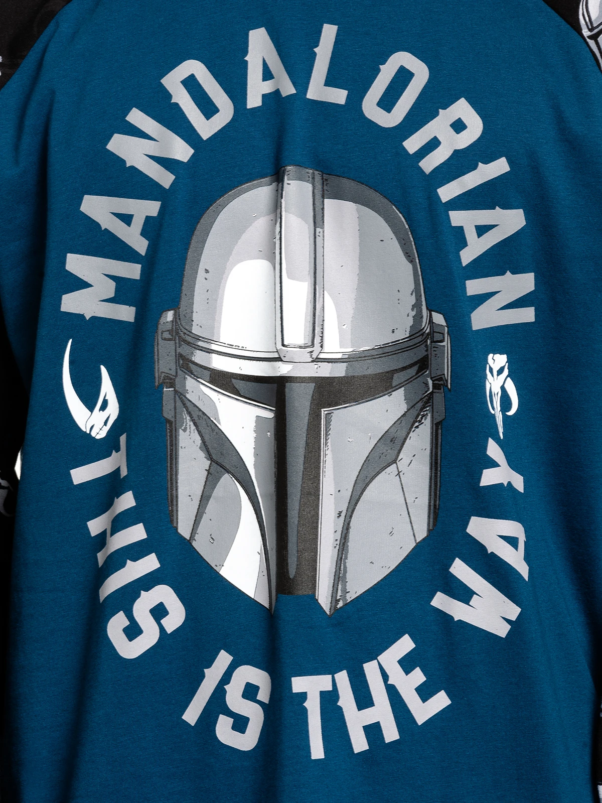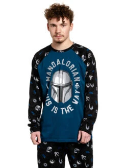 Dieses coole Mandalorian Pyjamaoberteil besteht aus einem angenehmen Baumwollmaterial. Es ist locker geschnitten und hat lange Arme. Als Frontprint findet sich der plakative Kriegerhelm umgeben von dem Schriftzug ‚MANDALORIAN – THIS IS THE WAY‘, was soviel bedeutet wie ‚MANDALORIAN – DAS IST DER WEG‘ auf blau wieder. Die Ärmel sind in schwarz und mit Emblemen aus der Staffel in grau/weiss aus versehen. Hol dir den passenden ‚Mandalorian The Way Pyjama‘ für den nächsten Sofa Star Wars Abend!
