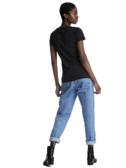 Es ist leger geschnitten und hat kleine abgeflachte Nieten auf den Schulterträgern.