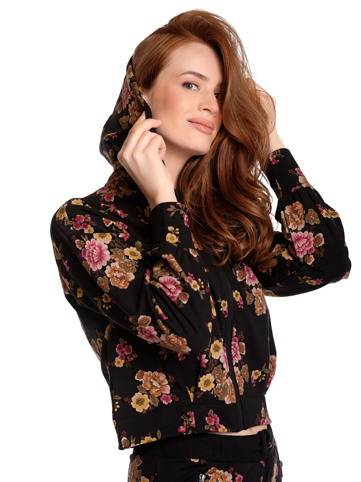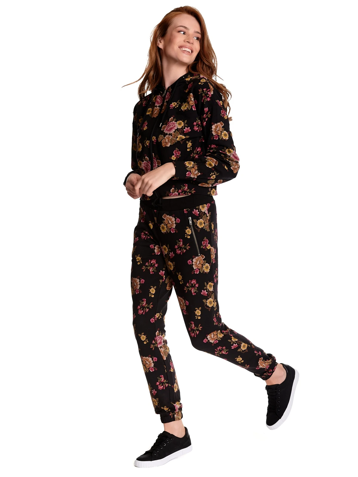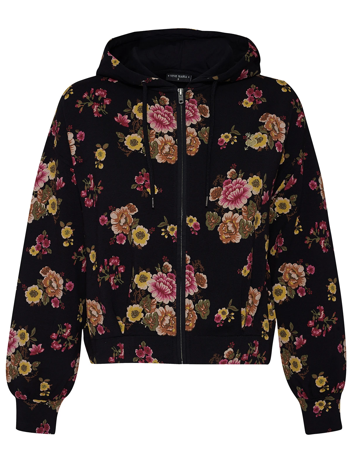 Die tolle Vive Maria Kapuzenjacke ist aus einem angenehmen Baumwoll-Modal-Gemisch mit Elasthananteil. Sie ist gerade und kurz geschnitten. Die langen Arme und der untere Saum wird mit einem schmalen BĂĽndchen abgeschlossen. Die Jacke hat eine Kapuze und einen durchgehenden ReiĂźverschluss. Das muster zeigt einen herbstlichen Blumendruck auf schwarzem Stoff. Die ‚Barock Sweat Jacket‘ ist ein stylischer Herbstbegleiter und passt sowohl zur Jeans als auch zur Jogginghose.