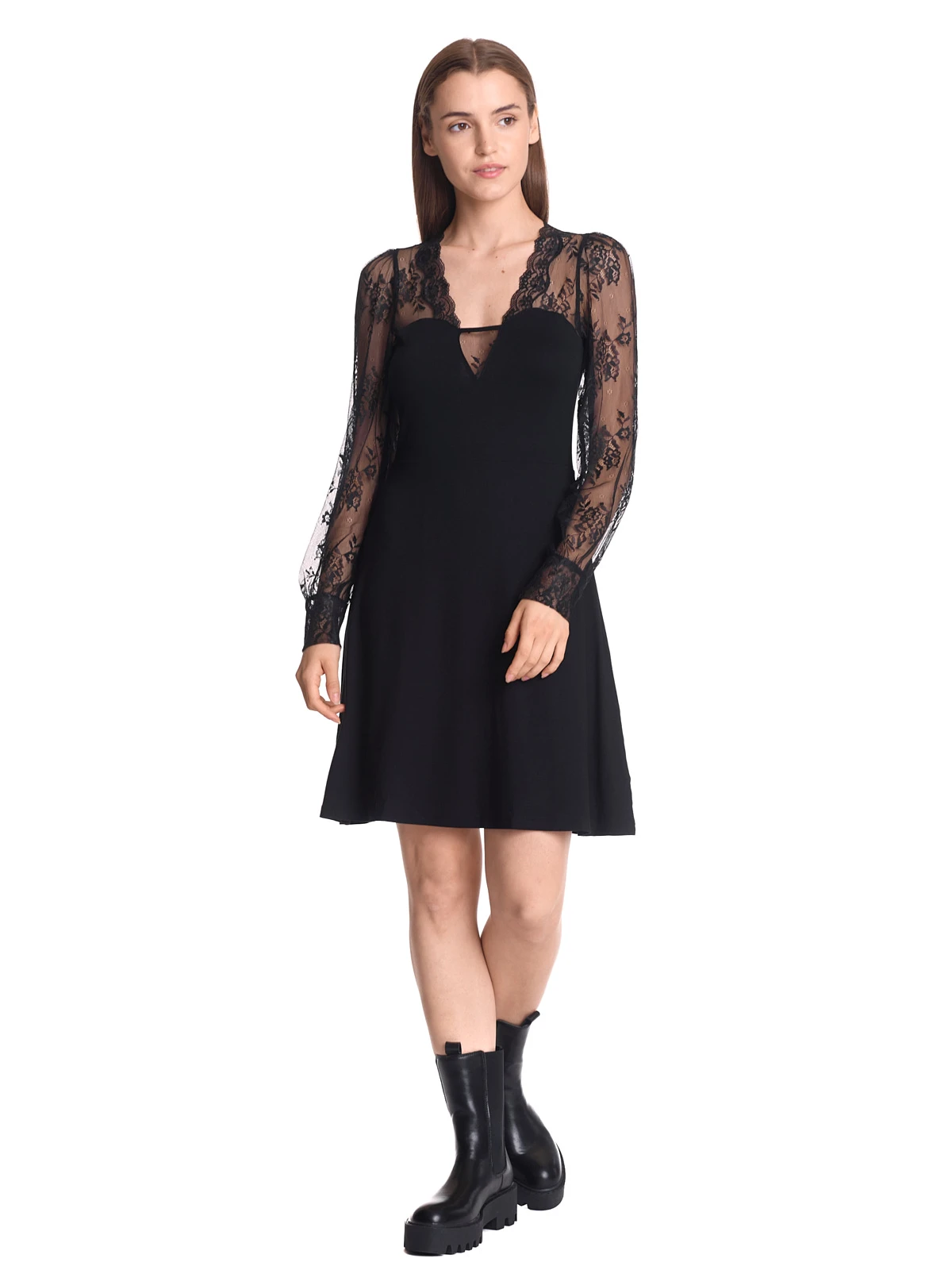 Black Dancing mit Vive Maria Das wunderschöne Vive Maria Kleid ist aus einem angenehmen Materialmix. Das Hauptmaterial ist aus einer Viskose-Elasthan-Mischung, der Futterstoff im Rockteil ist aus Polyester. Die eingesetzte Spitze ist aus Polyamid, bzw. aus einem Polyester-Elasthan-Gemisch. Das Kleid ist unifarben schwarz. Das Vive Maria Kleid ist in einer schönen A-Linie geschnitten. Die langen Arme werden mit einer breiten Manschette abgeschlossen. Der tiefe V-Ausschnitt ist mit einem StĂĽck transparenter Spitze hinterlegt. eine Teilungsnaht auf Taillenhöhe trennt das figurbetonte Oberteil vom leicht ausgestellten Rockteil, der unterfĂĽttert ist und somit gut fällt. Die Ă„rmel sowie der vordere und hintere Schulterbereich ist aus transparenter schwarzer Spitze gefertigt. Das ‚Black Dancing Dress‘ ist super schick und passt hervorragend zum romantischen Candlelight-Dinner. Kombiniet werden kann das Kleid mit Stiefeln oder Stiefeletten. Länge in Gr. S ca. 90 cm.