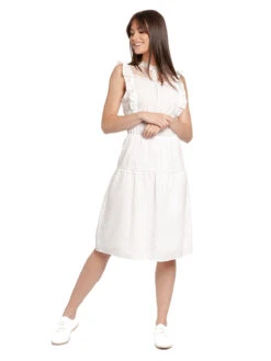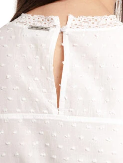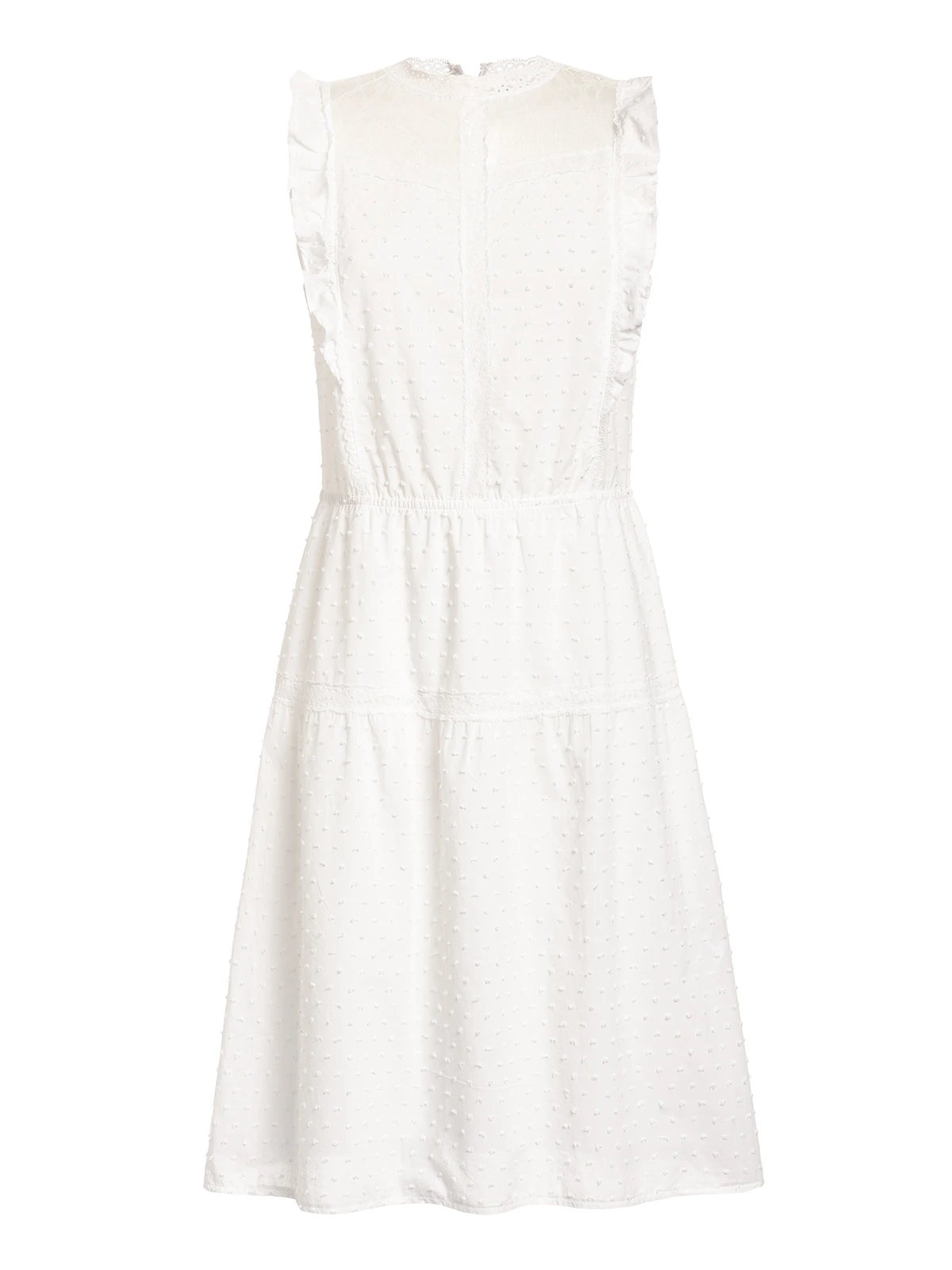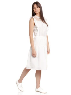 Das sĂĽĂźe Freizeitkleid ist aus einem angenehmen Baumwollmaterial. Es ist in leichter A-Linie geschnitten mit einem Gummizug im Taillenbereich. Der kleine Stehkragen sowie der vordere Schulterbereich sind aus transparenter Spitze gearbeitet. Seitlich angebrachter Volant zieht sich ĂĽber das komplette Oberteil und bildet die Ă„rmel des Kleides. Der Kragen wird im Nacken mit einem Knopf und einem Gummizug geschlossen. Im Rockteil ist ein Streifen aus transparenter Spitze eingeareitet, die noch mal eine optische Auflockerung darstellt. Das Kleid ist kopmolett unterfĂĽttert, aber dennoch leicht durchscheinend. Der Unterstoff endet knapp unter dem eigentlichen Kleid. Der Stoff ist aus Baumwolle Voile mit Punkten und ein sĂĽĂźer Begleiter fĂĽr den Sommer. Der Baumwollstoff ist nicht dehnbar, wodurch eine lockere Passform entsteht. Das ‚Boho Love Lacedress‘ ĂĽberzeugt mit sommerlicher Leichtigkeit und passt sowohl zu Wedges als auch zu leichten Sneakern. Wem das Spitzenkleid etwas zu hell ist, der findet in unserem ‚Boho Black Lacedress‘ eine schicke Alternative.
