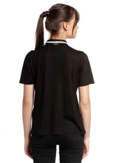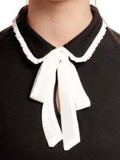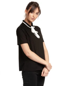 Die sĂĽĂźe Vive Maria Shirtbluse ist aus einem angenehmen Viskosematerial mit Elasthananteil. Sie ist figurbetont geschnitten und hat kurze Arme. Der runde Halsausschnitt wird vorne mit einem Knopf geschlossen, so dasse in kleines Guckloch entsteht. Der Blusenkragen ist mit einer cremefarbenen RĂĽsche abgeschlossen, die sich schön vom ansonsten schwarzen Shirt absetzt. Ein cremefarbenes Chiffonband verläuft unter dem Kragen und wird vorne zu einer Schleife gebunden. Ein wundervolles Shirt, das schick und lässig zugleich ist. Die ‚Captain’s Crew Bluse‘ ist absolut zauberhaft und passt hervorragend zur schwarzen oder blauen Jeans sowie ein paar Sneakern. Sie ist ein lockerer Freizeitbegleiter, aber ist auch sehr gut fĂĽrs Office geeignet.