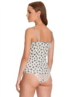 Das süße Vive Maria Wäscheset ist aus einem angenehmen Viskosematerial mit Elasthananteil und besteht aus zwei Teilen. Das Hemdchen ist figurbetont geschnitten, hat breite Träger und einen tiefen V-Ausschnitt, der mit einer Bordüre aus transparenter cremefarbener Spitze abgeschlossen werden. Der Dekolleteebereich ist mit drei kleinen Knöpfen sowie einer Satinschleife verziert. Die Armausschnitte sind mit einer cremefarbenen Litze abgeschlossen. Eine cremefarbene Litze dient als Unterbrustnaht und sorgt für einen guten Sitz. Der Print zeigt ein geometrisches Blumenmuster auf blauem Stoff. Das Pantyhöschen wird sowohl am oberen Bund als auch an den Beinausschnitten mit einer Bordüre aus transparenter cremefarbener Spitze abgeschlossen. Eine blaue Satinschleife sowie zwei kleine Knöpfe zieren den vorderen Bereich. Das Print zeigt ein geometrisches Blumenmuster auf blauem Stoff. Hemdchen Länge in Gr. S ca. 56 cm Panty vordere Länge in Gr. S ca. 14,5 cm