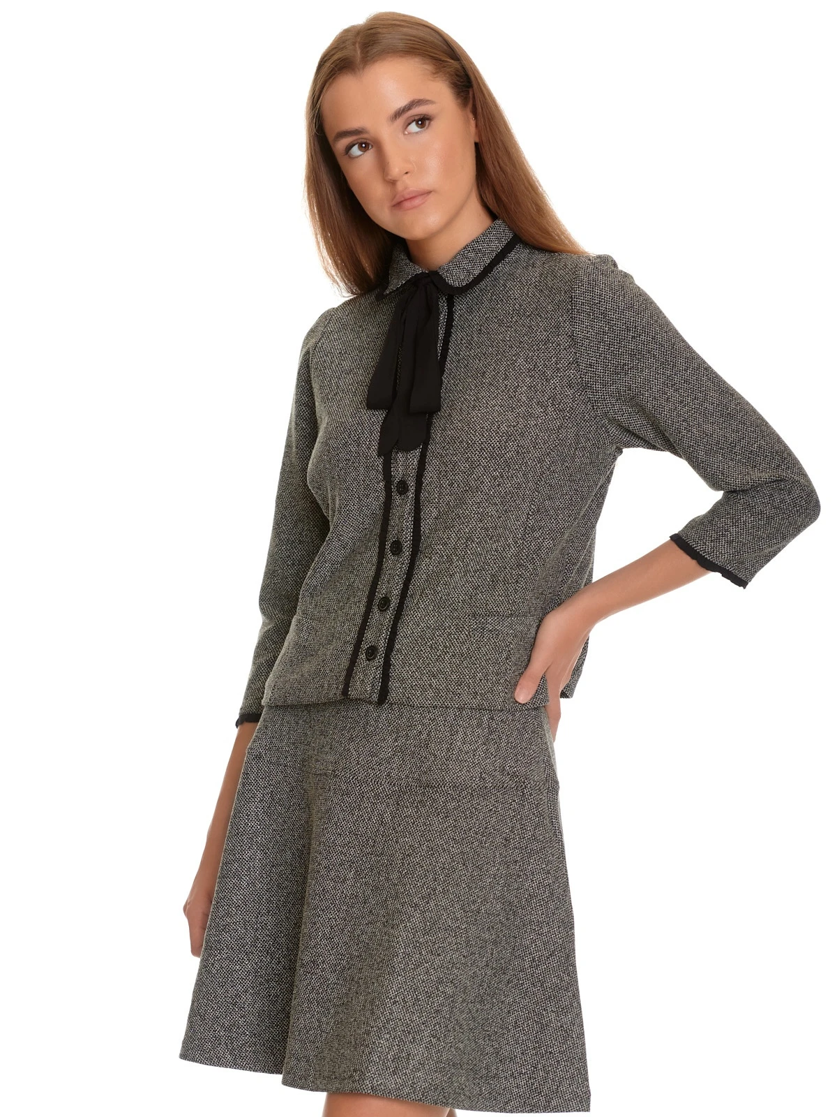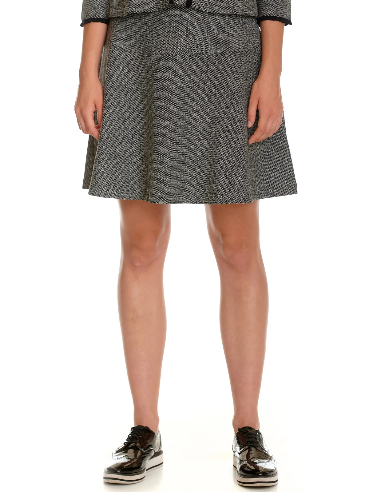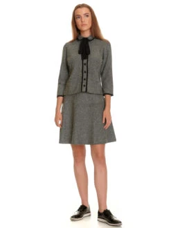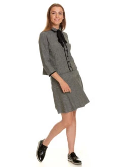 Der tolle Vive Maria Rock ist aus einem angenehmen Polyestermatierial mit Viskose und Elasthan. Das Futter ist aus Polyester. Der Rock hat einen schmalen Bund und einen seitlichen versteckten ReiĂźverschluss. Er sitzt oben eng und verläuft, aber einer Ziernaht im oberen Bereich, in sanfter A-Linie. Der Rock ist grau-meliert. Der ‚Cottage Girl Skirt‘ kann super mit einem schwarzen Shirt und Stiefeln kombiniert werden.
