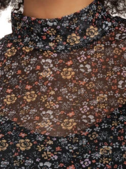Das wunderschöne Vive Maria Oberteil ist aus einem leichten Polyestermaterial. Es ist figurbetont geschnitten und hat lange Arme, die mit einem T-Shirtsaum abgeschlossen werden. Der runde Halsausschnitt geht in einen kleinen Stehkragen über. Das Shirt ist aus einem transparenten Tüll mit Blumendruck. Das ‚Ending Summer Tulle Shirt‘ ist schlicht und dennoch aufregend, dank des transparenten Tüllstoffes. Die Blumen wirken feminin und verspielt. Das Langarmshirt wertet Hosen oder Röcke auf und kann mit hohen Schuhen aber auch mit Boots kombiniert werden.