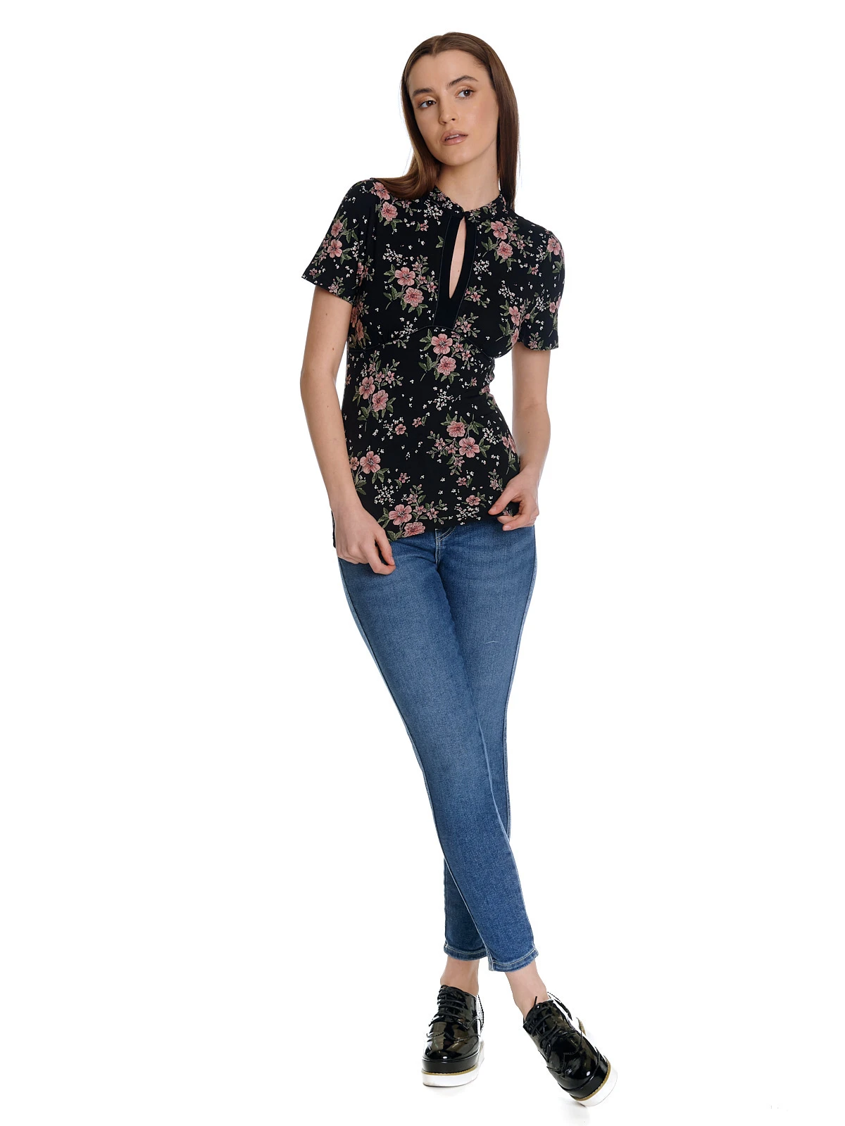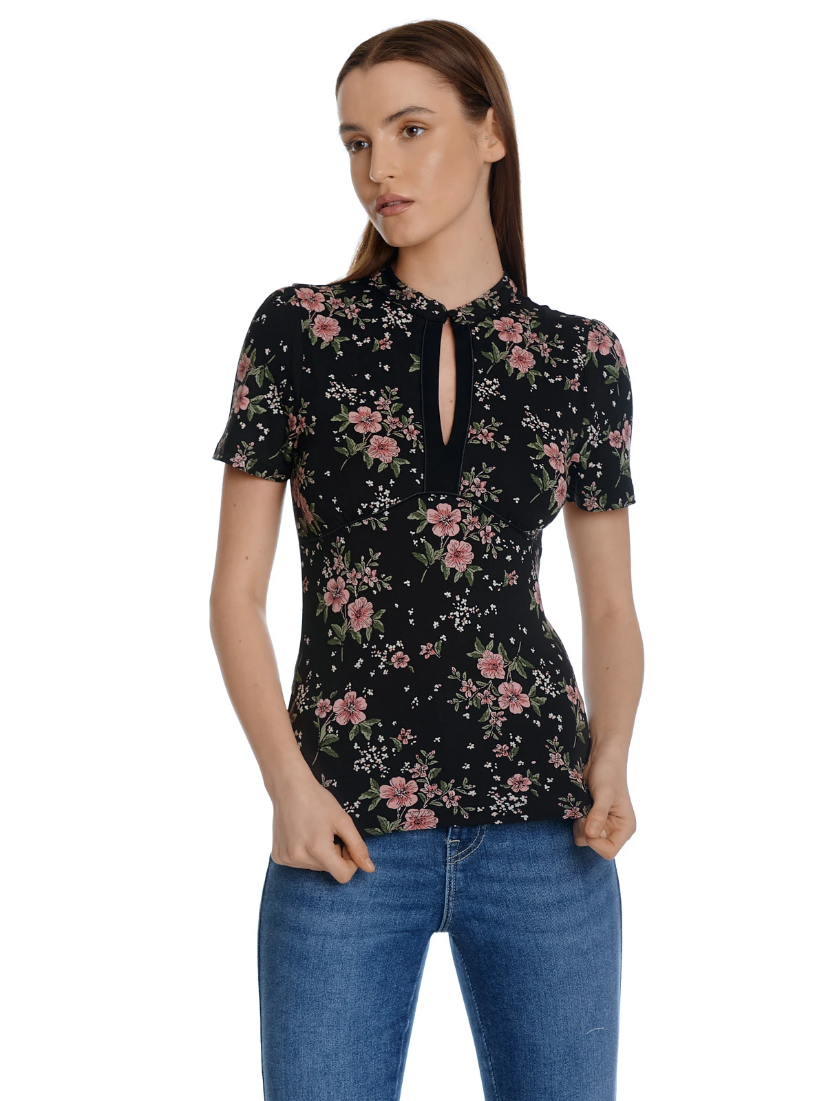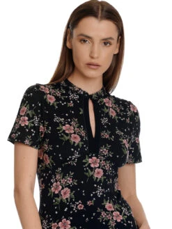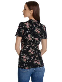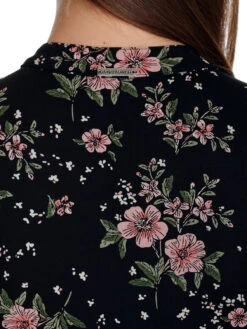 Das wunderschöne Vive Maria Shirt ist aus einem leichten Viskosematerial mit Elasthananteil. Der Druck zeigt rosafarbene HibiskusblĂĽten auf schwarzem Stoff – figurbetonte Passform – kurze Arme – kleiner Stehkragen mit KnopfschlieĂźe vorne – leichte Ă–ffnung am Ausschnitt – Unterbrustnaht fĂĽr guten Sitz – Shirt im Asiatischen Stil Länge in Gr. S ca. 58 cm