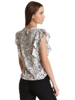 – sommerliches Vive Maria Blusenshirt aus einem angenehmen Baumwoll-Modal-Gemisch – figurbetontes Top mit angesetzem Volant als Ă„rmel mit Spitzenabschluss – runder Halsausschnitt mit Spitze, KnopfschlieĂźe hinten – eingearbeitete Spitze im Brustbereich – sĂĽĂźer Blumenprint auf cremefarbenen Stoff – Länge in Gr. S ca. 56 cm