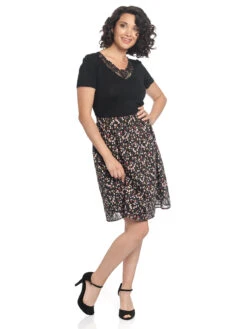 Der Tulipe Rock kann wunderschön zu schwarzen Shirts wie z.B. dem Jardin Noir Shirt und schwarzen Peeptoes kombiniert werden. Ein rotes Armband sowie kleine rote Ohrringe runden das Bild ab.Â