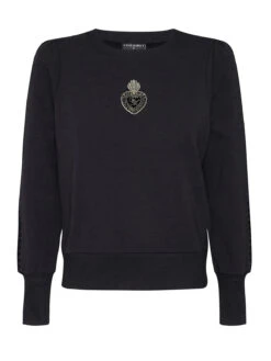 Ladylove mit dem Ladylove Set von Vive Maria Das extravagante Wäscheset besteht aus zwei Teilen und setzt sich aus unteschiedlichen Materialien zusammen. Der Hauptteil des Oberteils ist aus einem schwarzen Baumwollmaterial mit Elasthananteil. Die eingesetze Spitze ist aus einem Polyamid-Elasthan-Gemisch. Das Bindeband ist aus Polyester. Der Hauptteil des Unterteils ist aus einem Baumwoll-Elasthan-Gemisch, der eingesetzte Tüllstoff ist aus Polyester. Das Obertel gleicht vorne einem Bandeo-Top und ist mit Spitze, einer Litze, einer Satinschleife und einem Metallanhänger verziert. Transparente Spitze ziehrt den vorderen Schulterbereich und wird am Hals mit einem schmalen Chiffonband zusammnengebunden. Ein kleiner Stehkragen sowie kleine Ärmelchen, ebenfalls aus Spitze, komplettieren den sexy Look. Länge in Gr. S ca. 36 cm Das Bund am Pantyhöschen ist mit einer schwarzen Litze, sowie einer Satinschleife und einem Metallanhänger abgeschlossen. Ein Einsatz von transparentem Tüll gleicht einer Art Röckchen und ziert die Beinabschlüsse. Vordere Länge bis Zwickelnaht ca. 26,5 cm.
