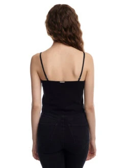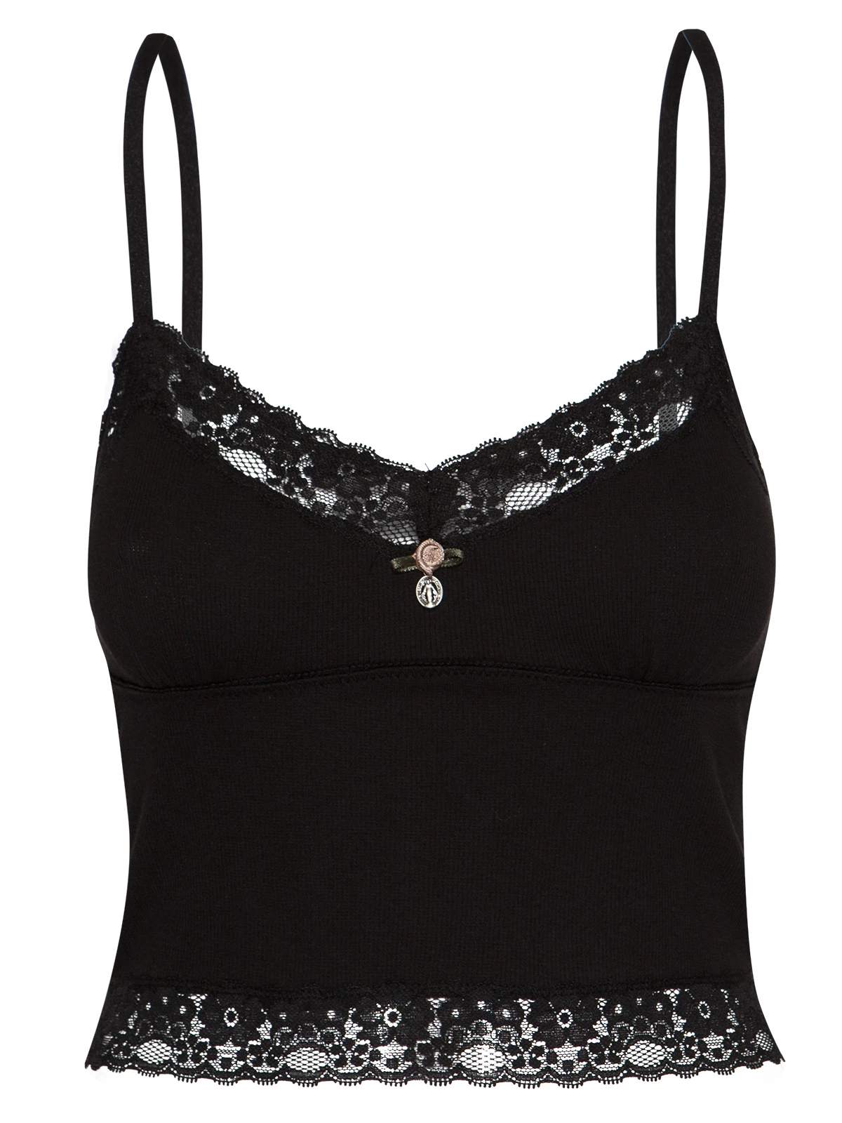 Das lässige Vive Maria Top ist aus einem angenehmen Baumwollmaterial mit Elasthananteil. Es ist figurbetont und Bauchfrei geschnitten und hat dĂĽnne verstellbare Träger. Der herzförmige Ausschnitt ist mit einer transparenten SpitzenbordĂĽre, sowie einer Satinrose und einem kleinen Metallanhänger verziert. Der RĂĽckenbereich wird mit einer schwarzen Zick-Zack-Litze abgeschlossen. Der untere Saum wird ebenfalls mit einer transparenten SpitzenbordĂĽre abgeschlossen. Der schwarze Rippstoff ist sehr fein und auf den ersten Blick kaum zu erkennen. Ein superschickes Top, fĂĽr alle, die es ein bisschen extravaganter mögen. Das ‚Lilly Short Rib Top‘ ist die perfekte Begleitung fĂĽr einen rockigen Look mit Skinnyjeans, Jeans- oder Bikerjacke und lässigen Boots. Wem das Top etwas zu kurz ist findet im ‚Lilly Rib Top‘ eine längere Alternative. Länge in Größe S ohne Träger ca. 30 cm.