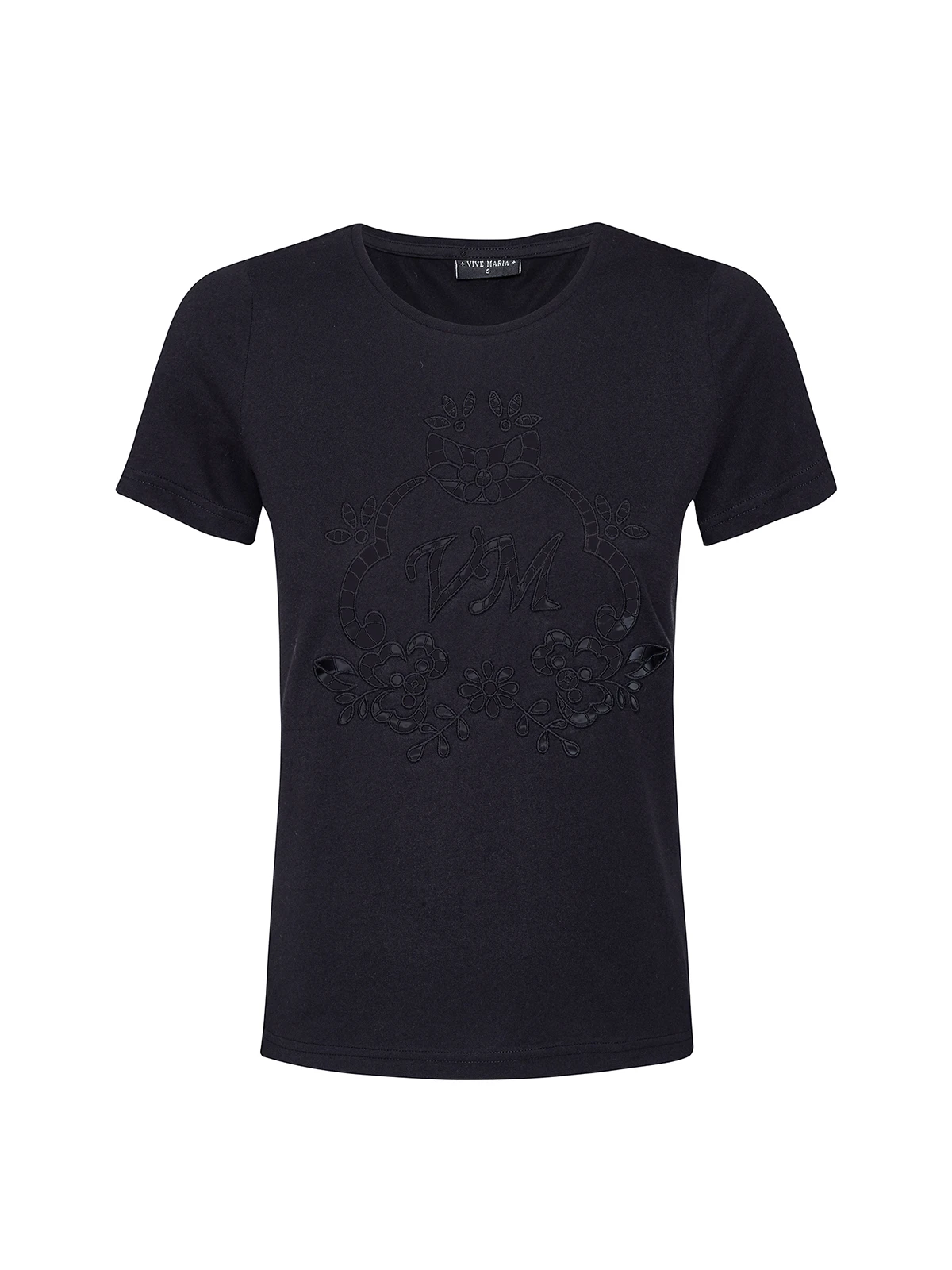 Vive Maria Shirt aus einem angenehmen Baumwoll-Modal-Gemisch – figurbetonte Passform – kurze Arme, runder Halsausschnitt – gesticktes Vive Maria Logo im Brustbereich – unifarben schwarz Länge in Gr. S ca. 59 cm
