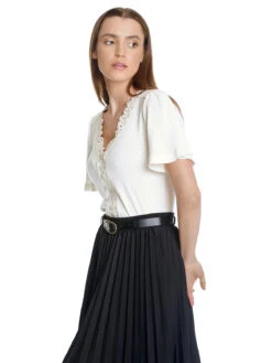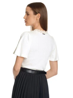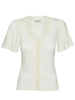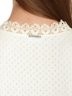 Das wunderschöne Vive Maria Shirt ist aus einem cremefarbenen Ajourestoff aus angenehmer Baumwolle. – figurbetonte Passform – kurze, locker geschnittene Arme – V-Ausschnitt mit Spitze und Knopfzierleiste – sĂĽĂźes Lochmuster fĂĽr romantischen Look – auch in schwarz erhältlich Länge in Gr. S ca. 58 cm