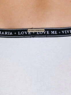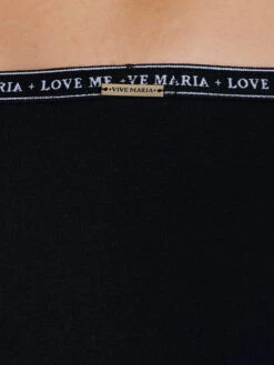 Das Vive Maria Slipset besteht aus zwei baugleichen Höschen aus einem angenehmen Baumwollmaterial mit Modalanteil. Ein Panty ist cremefarben, das andere schwarz – breiter Logo-Gummibund mit Rosenappliaktion, Schleife und Metallanhänger – seitliche Spitzeneinsätze – Häkellitze als Beinabschluss Vordere Länge bis Zwickelnaht ca. 12 cm