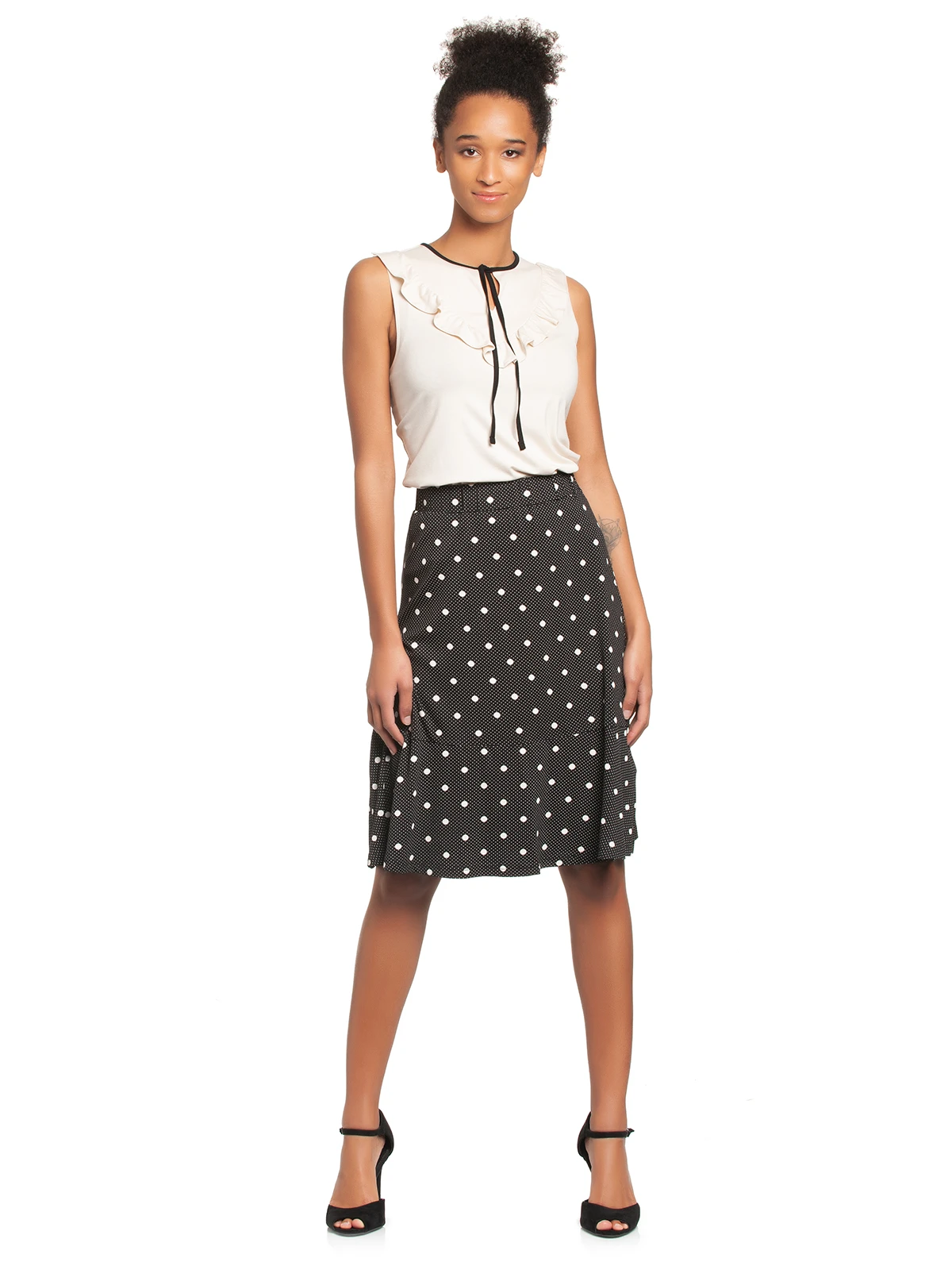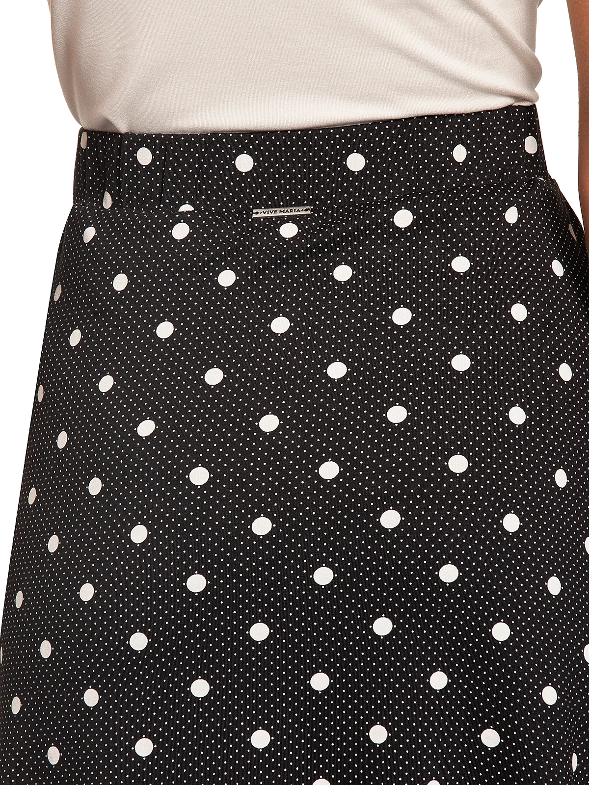 Punkt um Punkt mit der sĂĽĂźen Maria-Serie von Vive Maria. Der tolle Vive Maria Rock ist aus einem angenehmen Viskosematerial mit Elasthananteil und in leichter A-Linie geschnitten. Ein breiter Gummi dient als Bund und sorgt fĂĽr einen guten Sitz. Eine Teilungsnaht bildet eine optische Auflockerung. Das Muster zeigt verschieden groĂźe Punkte auf schwarzem Stoff. Der ‚Mia Maria‘ Rock ist ein kleines Allround Talent und kann sowohl legere als auch schick kombiniert werden. Sneaker und ein weiĂźes Shirt unterstreichen den lockeren Look, mit einer Bluse und Pumps wird er sofort klassisch. Eine farbliche Alternative bietet der ‚Summer Maria‘ Rock von Vive Maria.