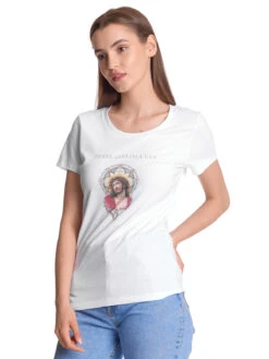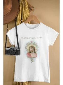 Back to the roots mit der Vive Maria Heiligen-Kollektion Der Aufdruck zeigt eine Jesusfigur sowie den Schriftzug ‚THANK GOD I’M A V.I.P.‘, was an die Anfänge unseres Kult-Labels erinnert.