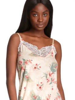 Das schöne Vive Maria Negligee ist aus einem angenehmen Viskosematerial mit Elasthananteil. Der Druck zeigt tropische Hawaii-BlĂĽten in Sorbet-Farben. Das Negligee ist schmal und gerade geschnitten. Es hat dĂĽnne verstellbare Träger, die mit einem kleinen rosafarben Satinschleifchen verziert werden. Der herzförmige Ausschnitt ist mit einer BordĂĽre aus transparenter Spitze sowie einer rosafarbenen Satinpaspel verziert. Länge in Gr. S ohne Träger ca. 78 cm. Das ‚Tropic Feeling Negligee‘ ist ein toller Begleiter fĂĽr laue Sommernächte und eine tolle Kombination aus Farben und Stoff.